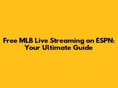 Free MLB Live Streaming On ESPN: Your Ultimate Guide