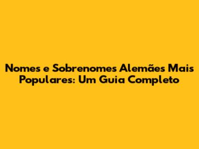 Nomes E Sobrenomes Alemães Mais Populares: Um Guia Completo
